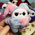 Jester Cat Plushie - Periwinkle/Pale Pink with Flowers