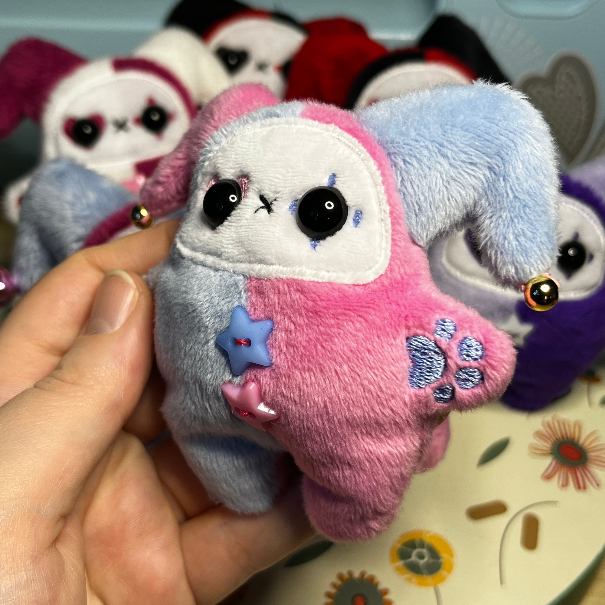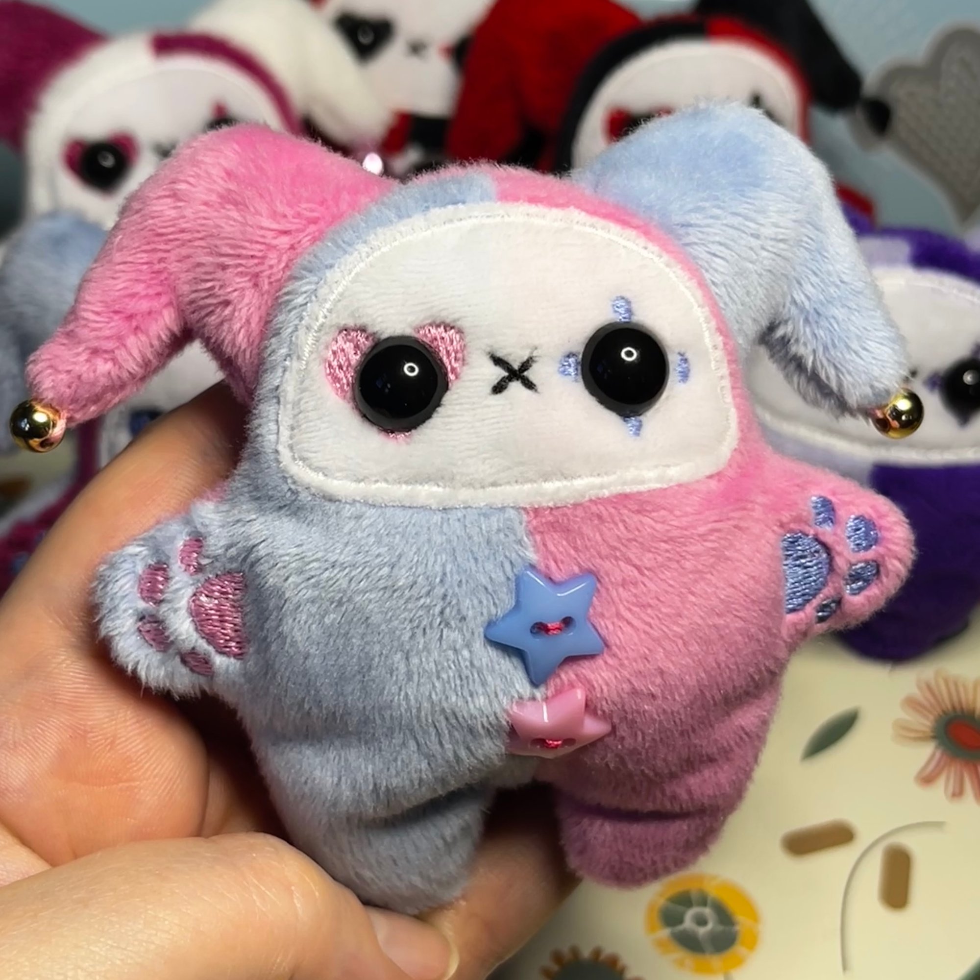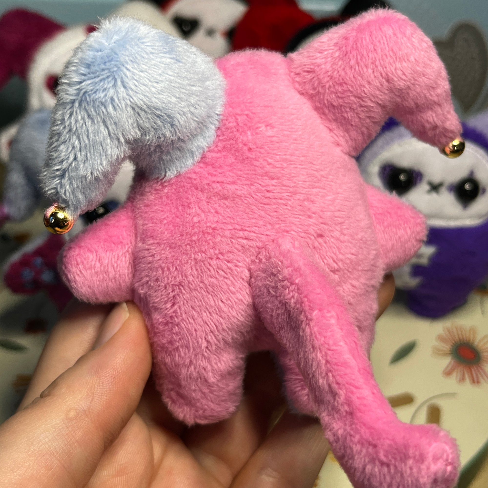 Jester Cat Plushie - Periwinkle/Pink with Gold Beads